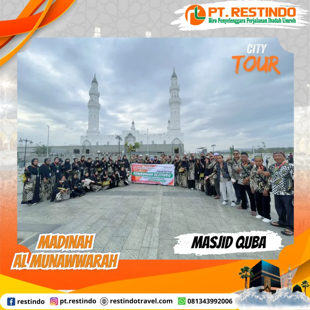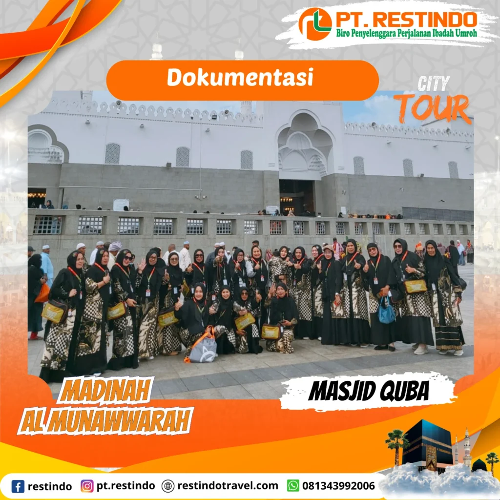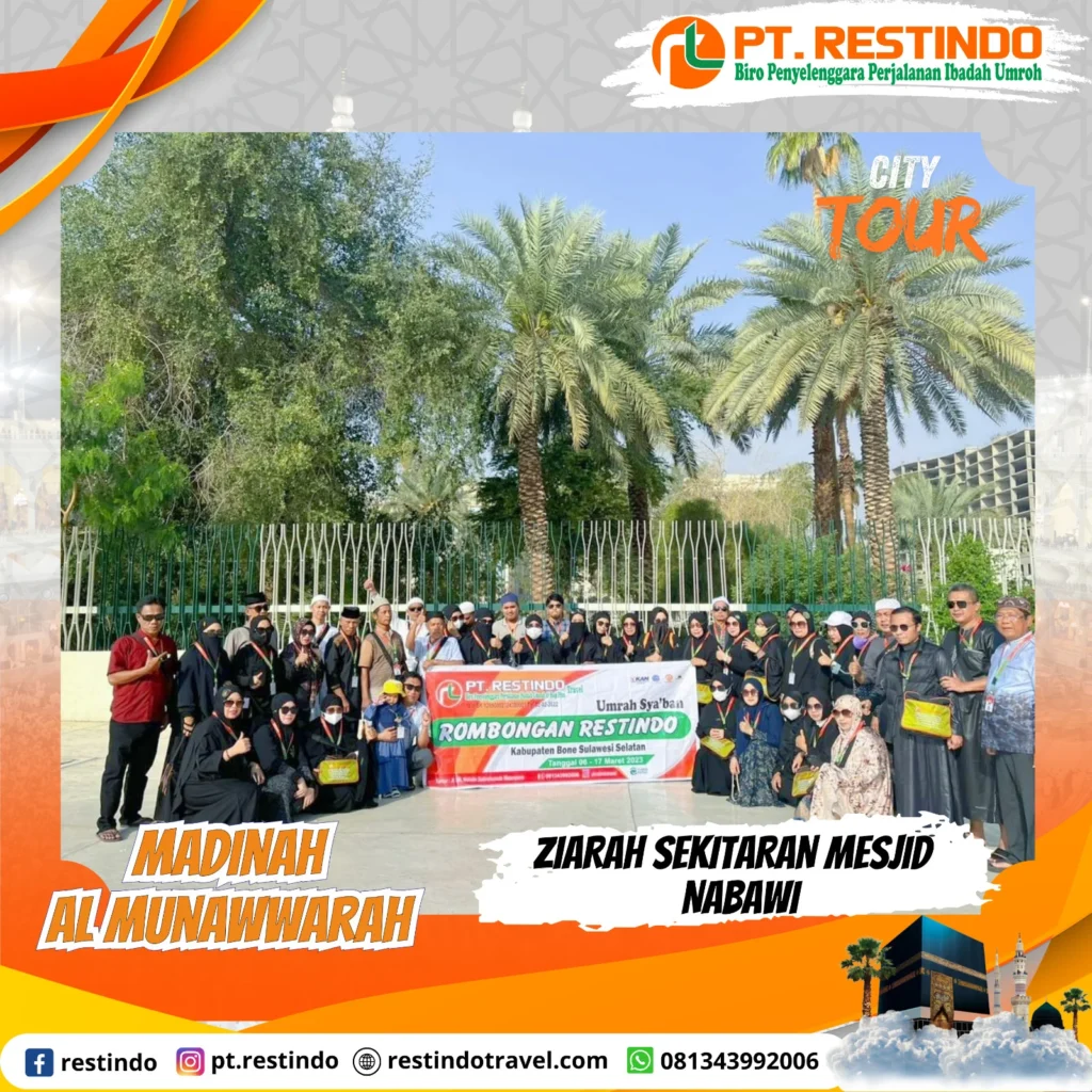 City tour mengunjungi Masjid Quba, Kebun Kurma, Jabal Uhud, Masjid Kiblatain, dan lainnya.