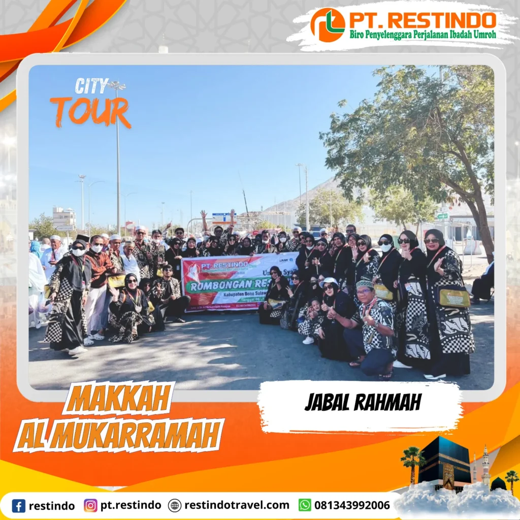City tour mengunjungi Jabal Nur, Jabal Magnet, Jabal Rahma, Jabal Tsur, Arafah, Muzdalifah, Mina, kemudian Tan’im untuk mengambil miqat bagi yang melaksanakan umrah kedua.